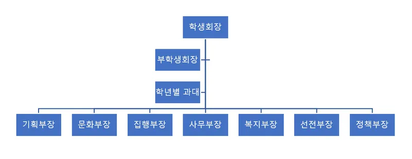 저희 학생회는 학생회장과 부학생회장을 비롯해 기획부, 사무부, 선전부, 집행부, 복지부로 나누어져 있으며, 부서별로 역할분배를 하여 학과에 이바지하고자 필요한 업무를 맡고 있습니다.